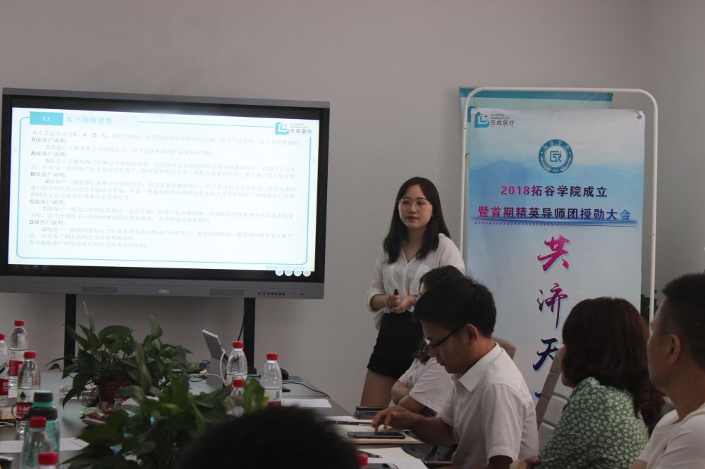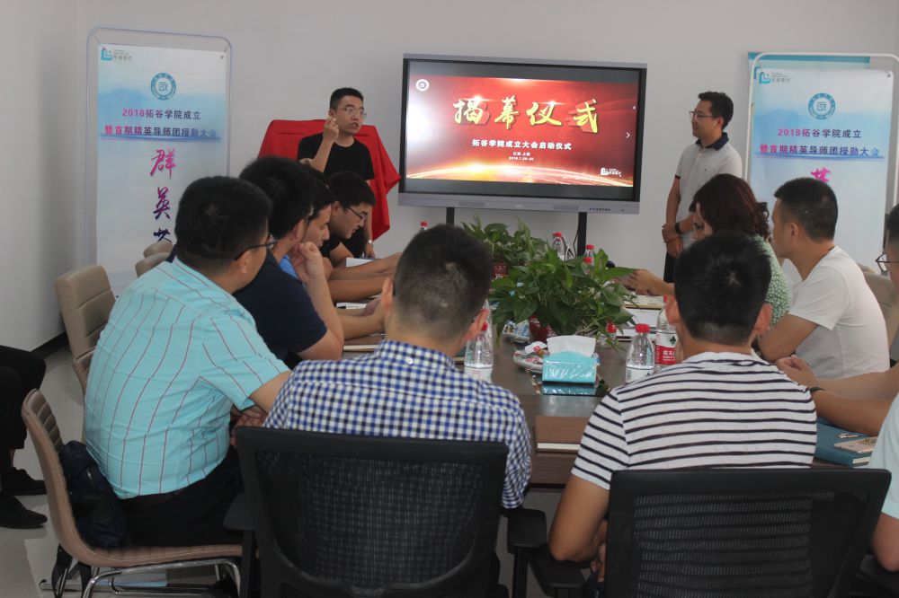 揭牌儀式上,江西樂成生物醫療有限公司總經理黃龍致辭,拓谷學院院長、市場部總監田偉向前來參加培訓的導師們表示歡迎,并期待導師們通過五天的系統培訓學有所獲,學有所成,學以致用。